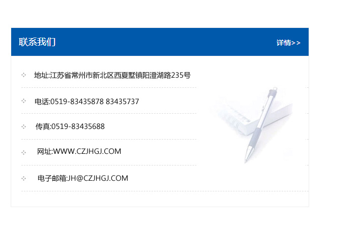 傳真:0519-83435688    郵編:213135    網址:WWW.czjhgj_com.slglove.com    電子郵箱:JH@czjhgj_com.slglove.com